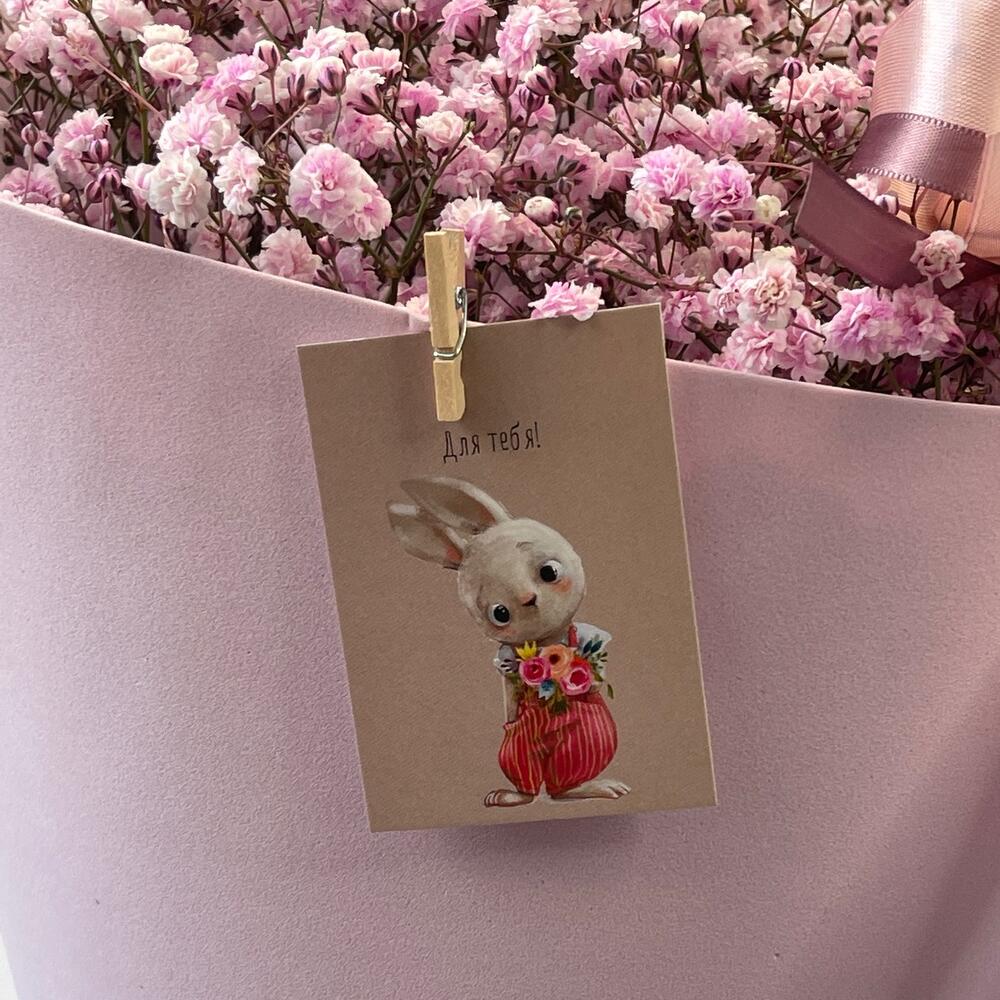 Гипсофила – 3 шт.Лента – 1 шт.Тишью – 1 шт.Упаковка дизайнерская – 1 шт.Открыточка с вашими пожеланиями – 1 шт.