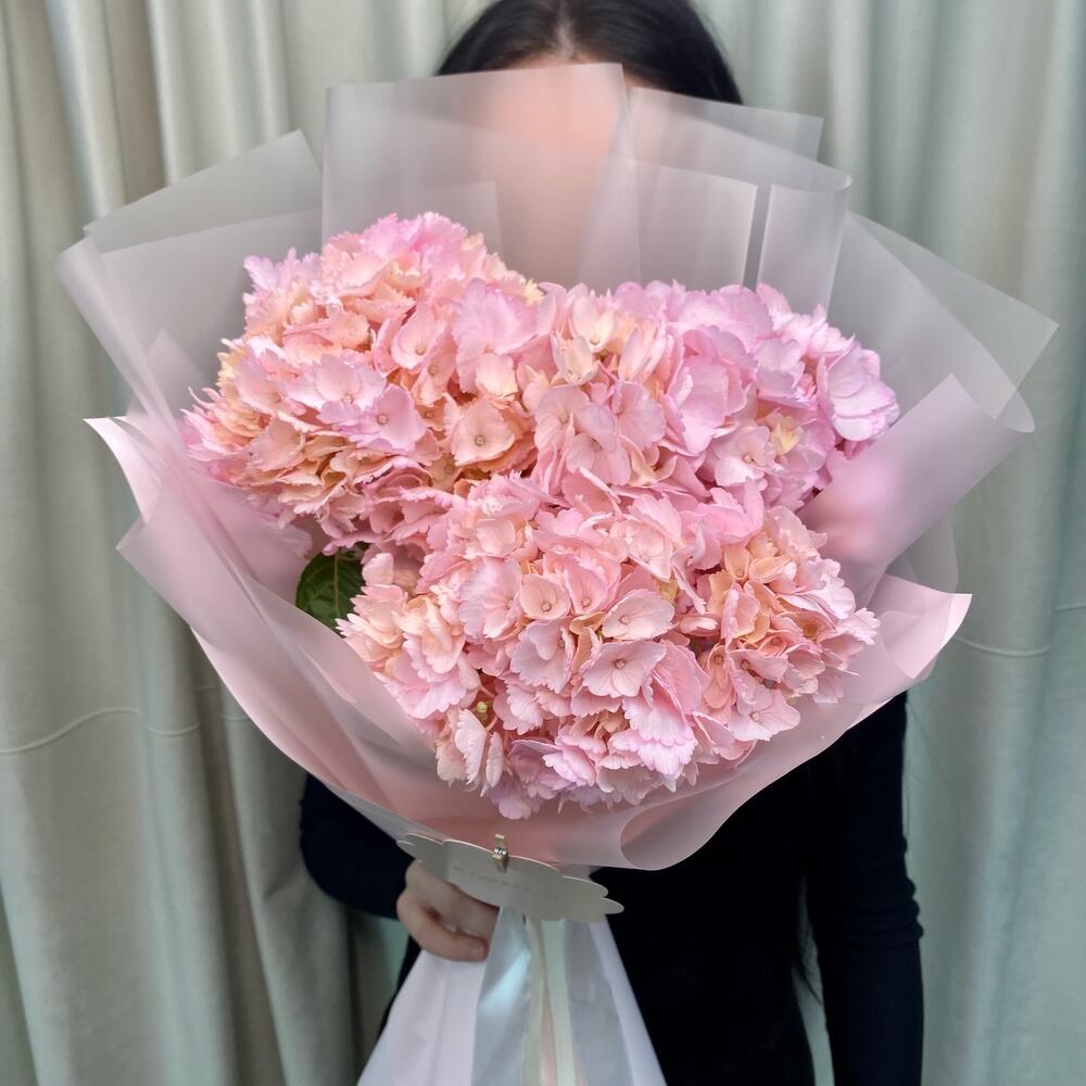 Розовый букет из 3 гортензий «Любовь»