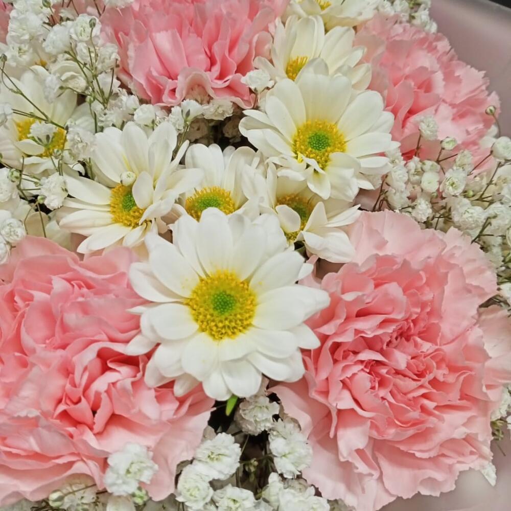 Букет из нежных гвоздик с сантини и гипсофилой