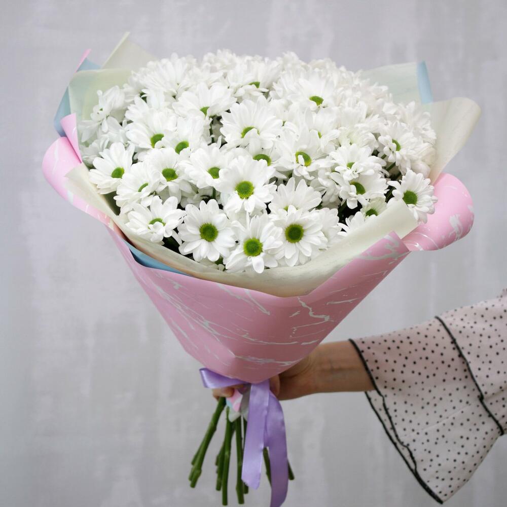 Букет из 15 хризантем Бакарди в стильной упаковке