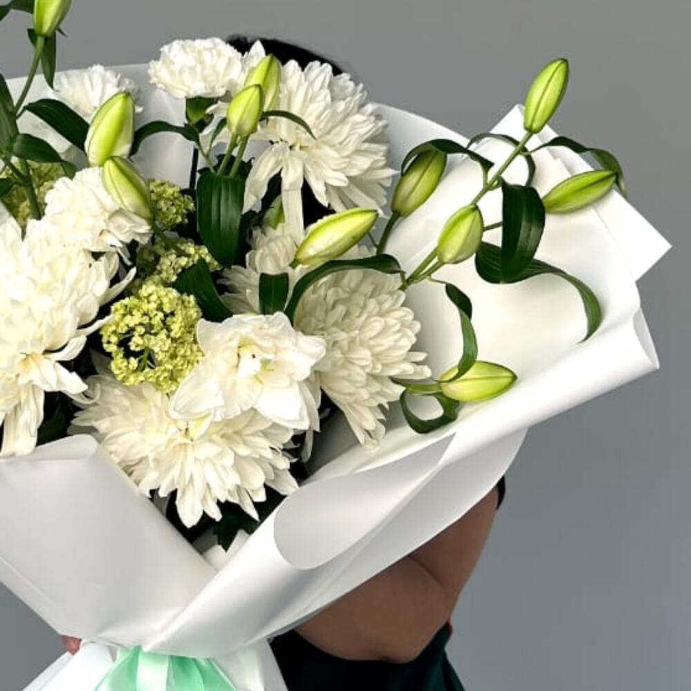 Лилия белая – 3 шт. Одноголовая хризантема – 4 шт.