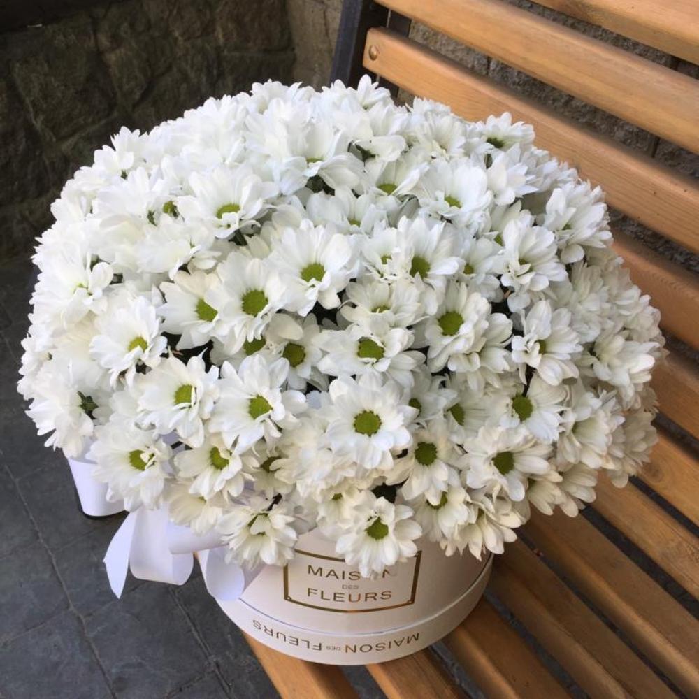 Ромашковые хризантемы являются отличной альтернативой летним ромашкам. Всем любителям ромашек, предлагаем шикарную композицию из белых хризантем в большой фирменной белой Коробке. Данную композицию можно подарить на любой повод!