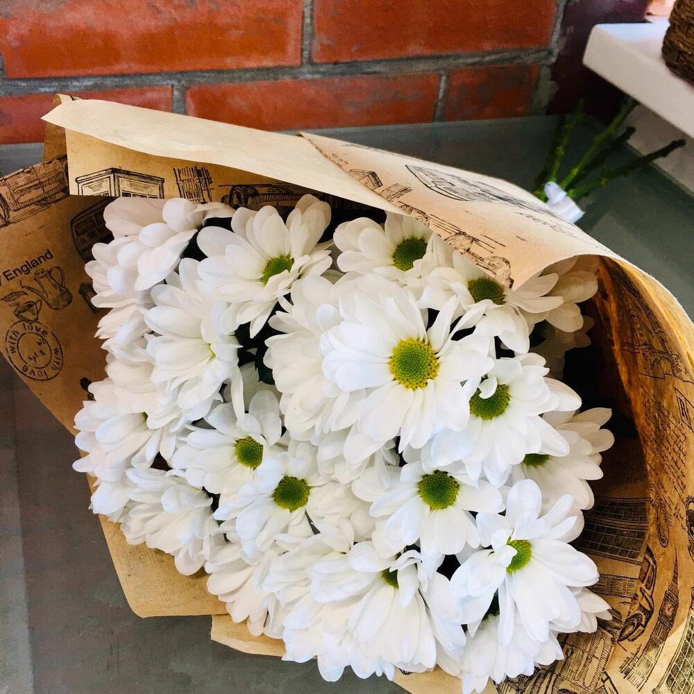 Хризантема кустовая – 7 шт.Крафт упаковка – 1 шт.