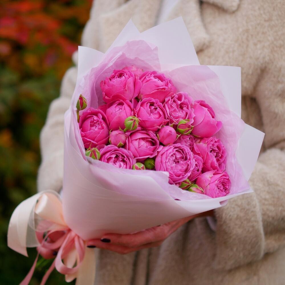15 кустовых пионовидных роз сильва пинк. Букет 24 KimFlo