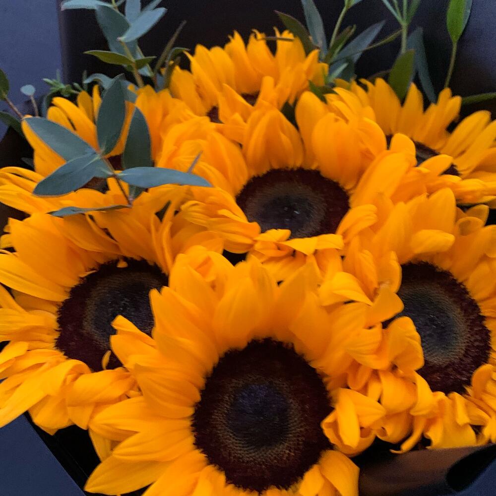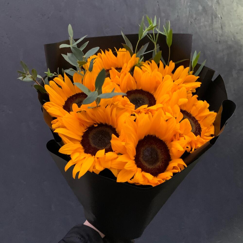 Букет из 7 подсолнухов и эвкалипта