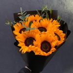 Букет из 7 подсолнухов в стильной упаковке "Сфера"