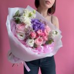 Ароматный букет с гортензией, матиоллой и лизиантусом