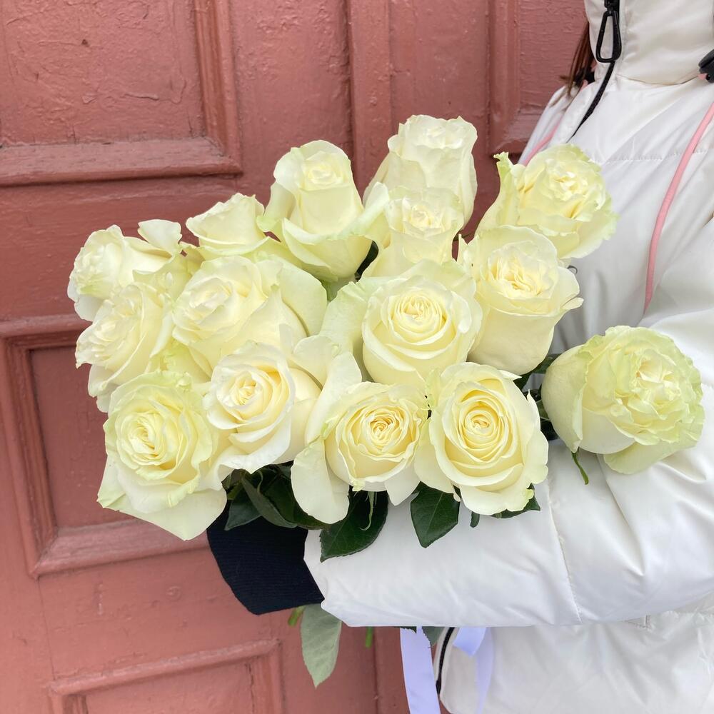Букет из 15 роз белых со статицей
