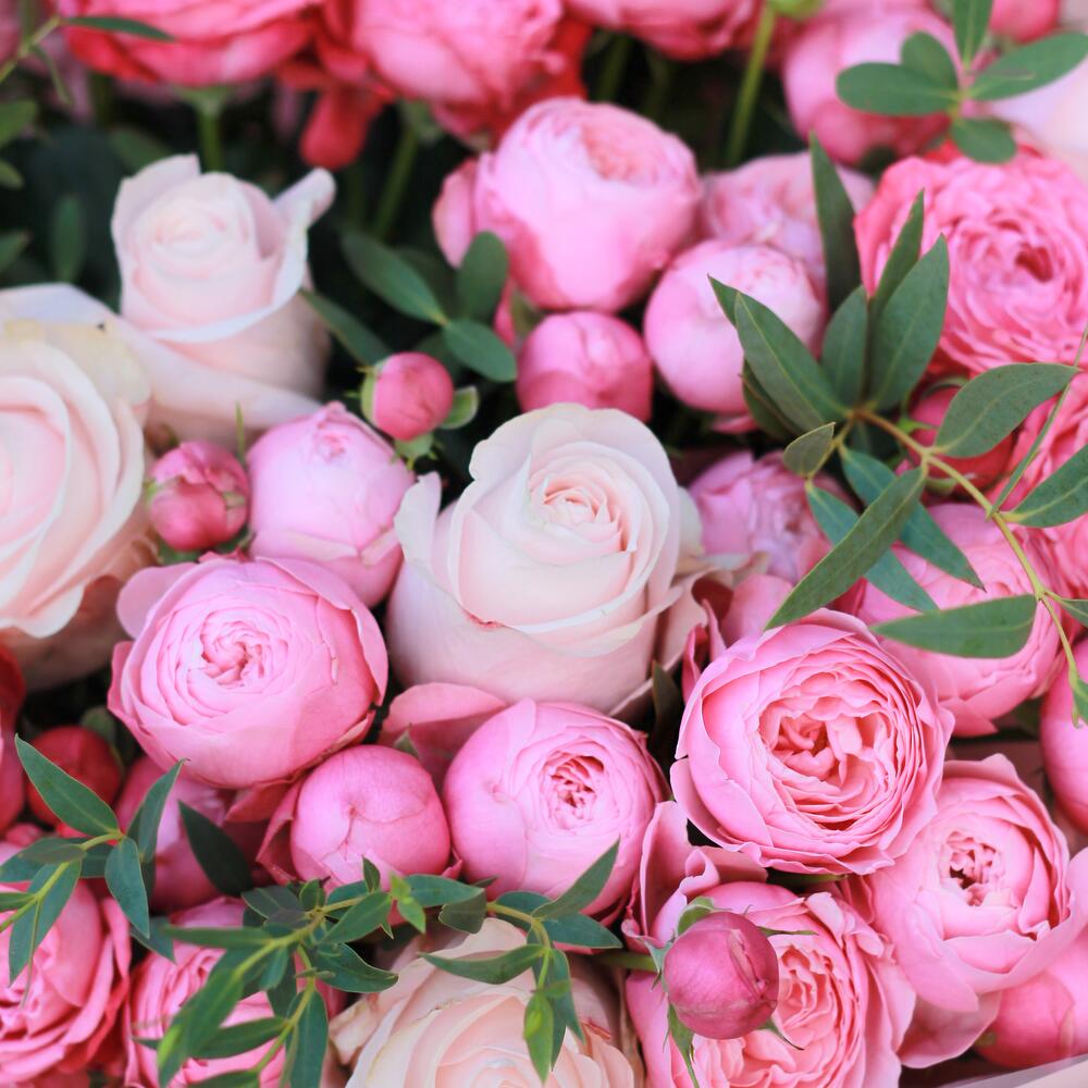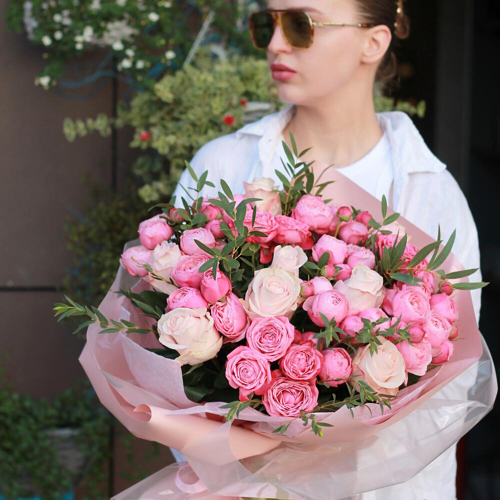 Гвоздики, Кустовые розы, Пионовидные розы, Розы