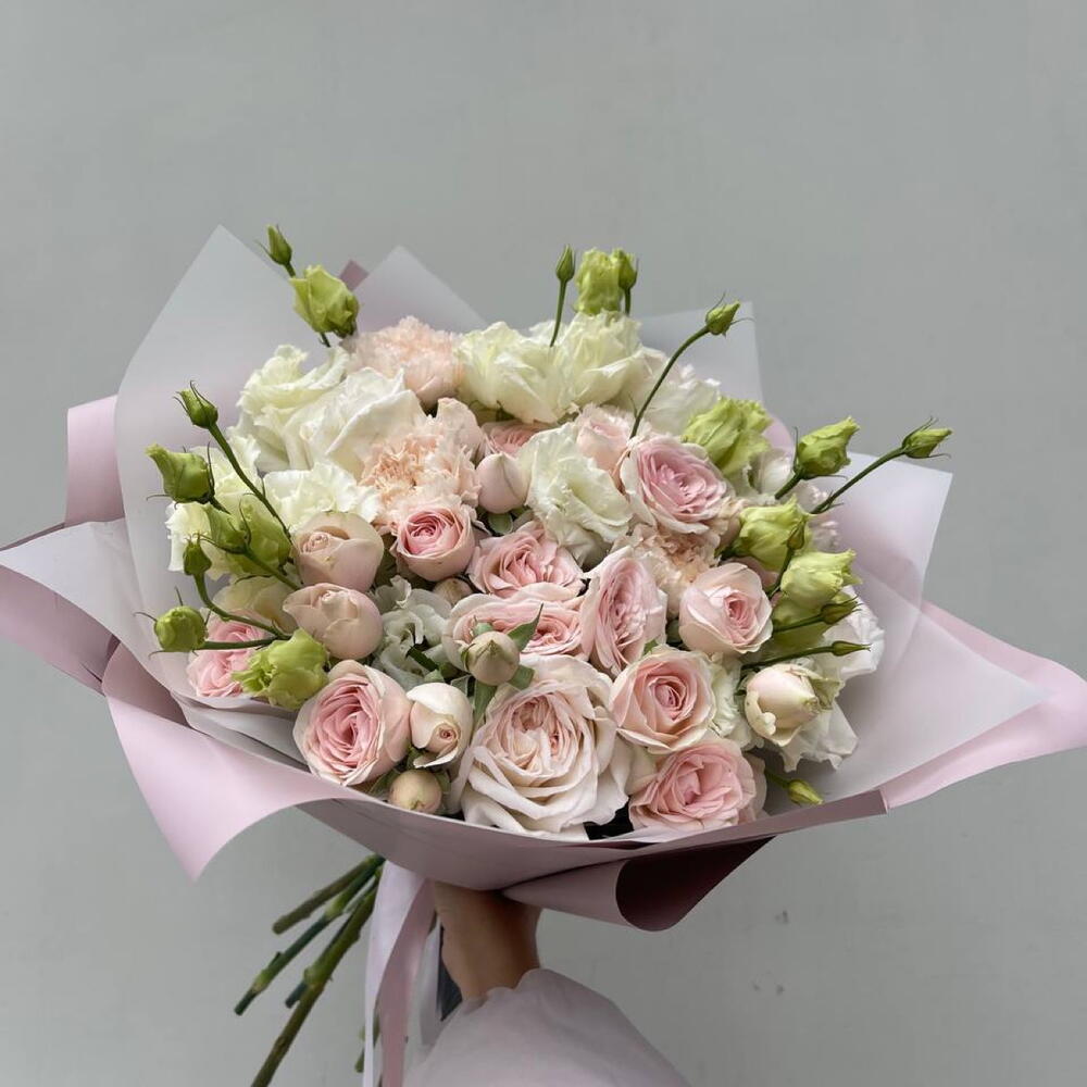 Гвоздики, Кустовые розы, Лизиантусы, Пионовидные розы, Розы