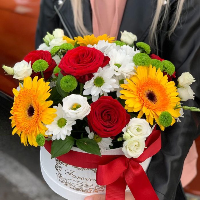 Цветы в коробке сборный букет