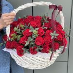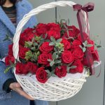 Метки: 14 февраля, 51 роза, от 5000 руб, Роза 30 см, Розы в корзине, цветы в корзине