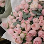 mono bouquet 133 из 15 пионовидных роз сорта Mansfield park с эвкалиптом