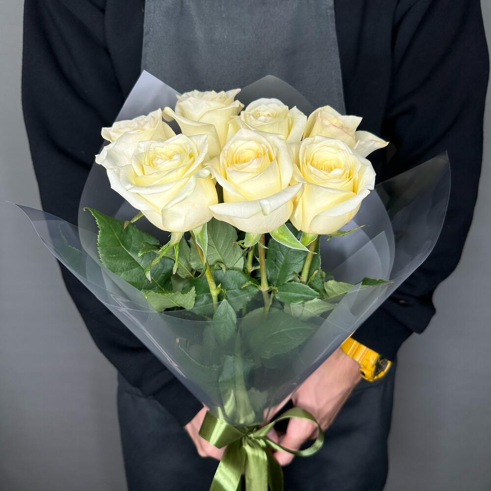 Лента атласная – 1 шт.Упаковка дизайнерская – 1 шт.Роза одноголовая эквадор – 7 шт.