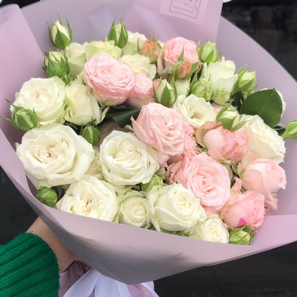 Гвоздики, Кустовые розы, Пионовидные розы, Розы