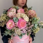 Пионвидные розы в шляпной коробке