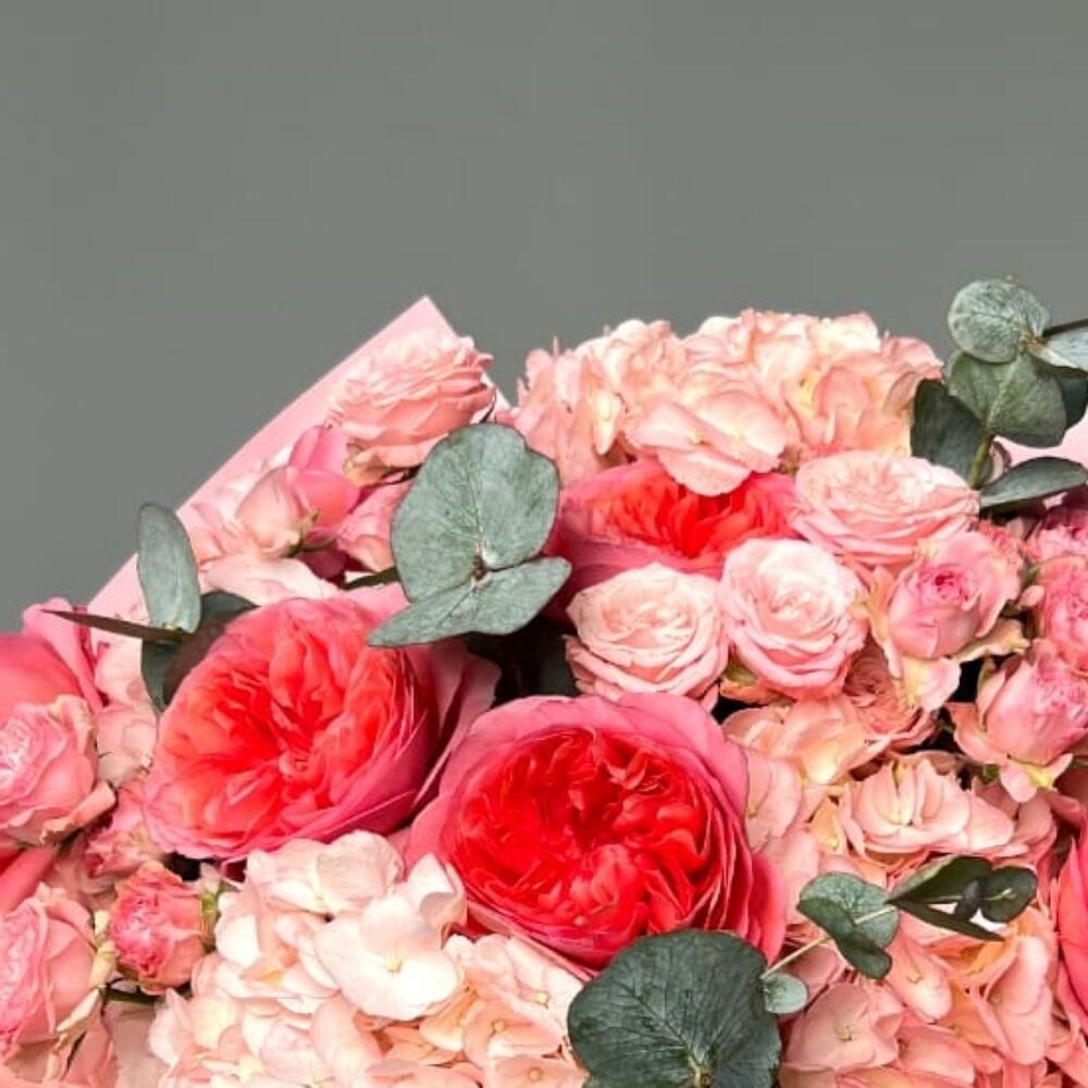Гвоздики, Кустовые розы, Лизиантусы, Пионовидные розы, Розы